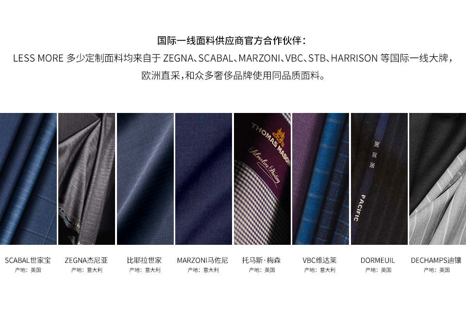LESS MORE 多少定制是能夠提供男士全品類定制產(chǎn)品的生活方式品牌,對于中國商務(wù)男士來說,定制是對西裝最認真的態(tài)度。